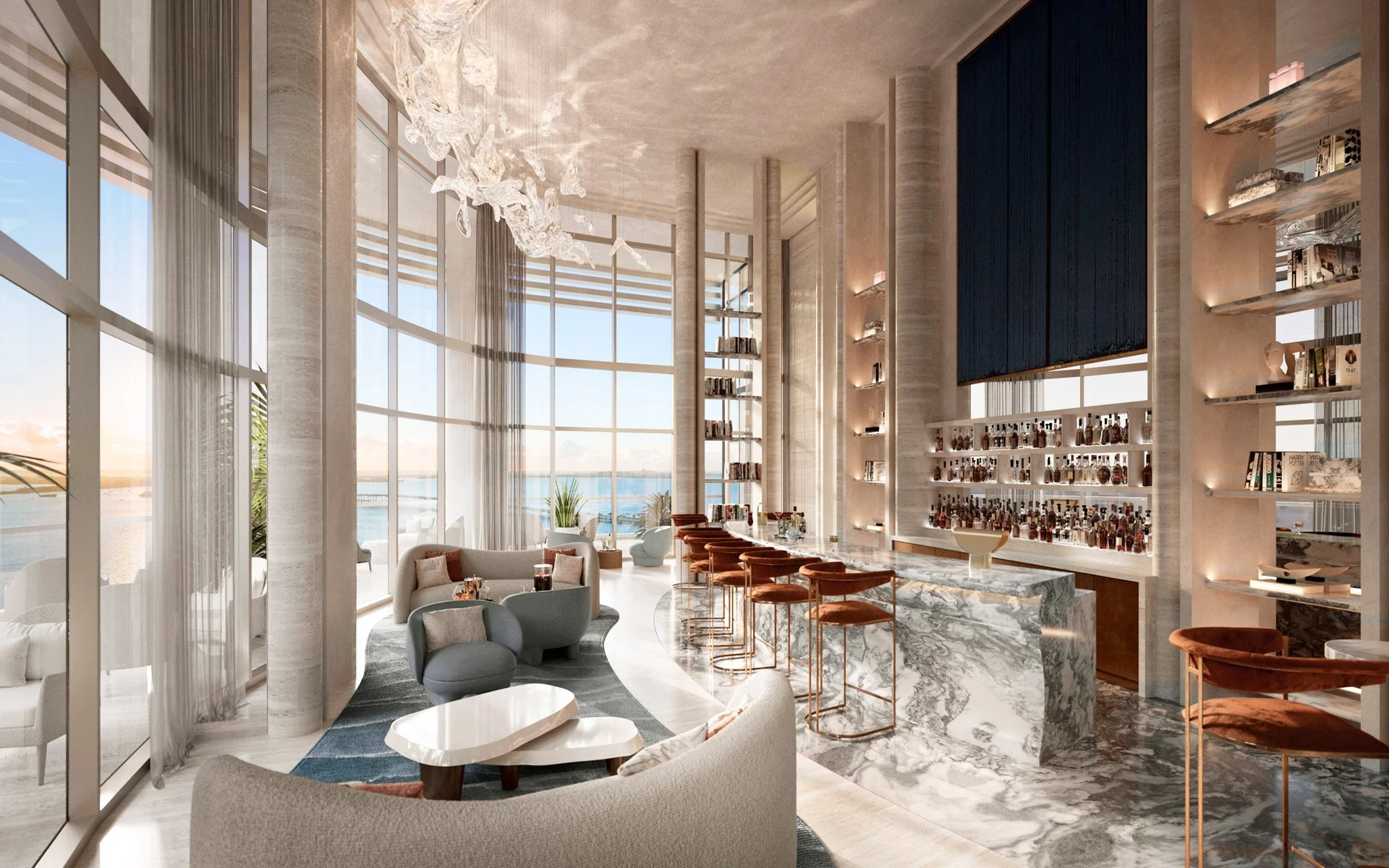Located in the heart of Miami’s Brickell neighborhood, the amenity collection at the St. Regis Private Residences is an expansive narrative of modern luxury, where the storied heritage of the St. Regis brand meets a contemporary, coastal-inspired architectural language.